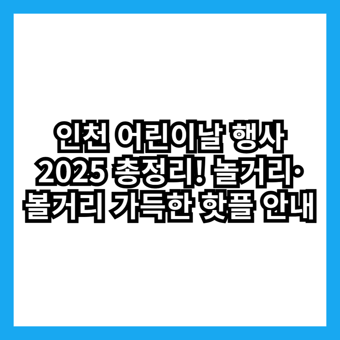 2025년 인천에서 열리는 어린이날 행사를 한눈에 정리한 포스팅! 무료 체험, 축제 일정, 아이와 가볼만한 명소까지 모두 소개합니다.
