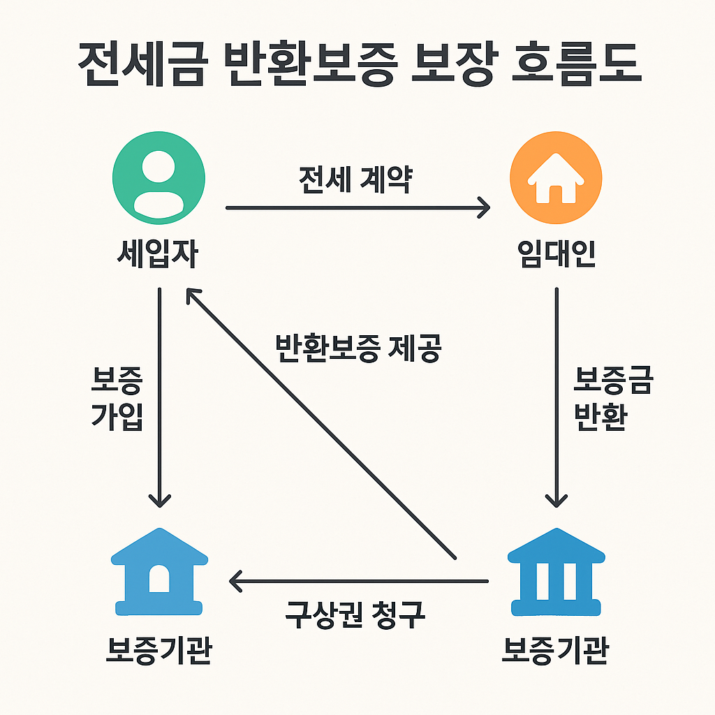 전세금 반환보증은 세입자가 임대차 계약 기간 종료 후 전세금을 돌려받지 못하는 경우, 보증기관이 대신 보증금을 지급한 후 임대인에게 구상권을 청구하는 구조입니다.